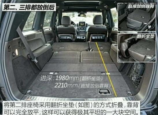 奔驰GLS450 后备箱空间方面:一个字就是能“装”,有句话形容后备箱空间大可以用“可以解锁新姿势”来形容,全新奔驰GLS450后排座椅放倒后那真的是可以“解锁全部姿势了”从图中的数据显示不难看出,他真的后备箱真的很大,能够满足在承载七位乘客的情况下,还可以放下随身携带的物件。