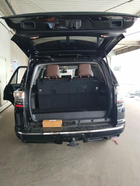 丰田超霸4Runner长4830,宽1930,高1830,(毫米)长度和普拉多基本一样,车子比普拉多矮一点,宽一点。车重2180公斤,可能少两个座位,略轻50公斤。是标准五座的,七座选装,后备箱比较高,选装第三排肯定很狭小,五座车后备箱有大型的储物暗格。丰田超霸4Runner美规4.0版内饰整体变化不大,中控面板采用了更多的亮面设计,仪表盘与液晶屏的背光颜色也有所调整。