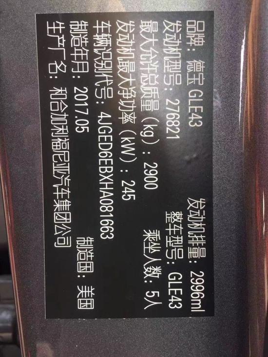 18款加规奔驰GLE43 AMG COUPE参数:奔驰(平行进口)长*宽*高:4816*1925*1762MM 车身结构:5门5座SUV 最高车速:210KM/H 百公里加速:5.7 S 轴距:2915MM 整备质量:2262KG 油箱容积:93L 行李厢容积:690L 进气方式:双涡轮增压气缸排列方式:V6 最大马力:390 最大功率:287KW 最大功率转速:5500-6000 最大扭矩:521 最大扭矩转速:1800-4000 变速箱:9挡手自一体自动变速箱驱动方式:前置四驱四驱形式:全时四驱中央差速器:多片离合器 助力类型:电动助力 车体结构: 承载式。 轮胎规格:265/45 R20 备胎规格:非全尺寸 气囊数量:6个 空气悬架:软硬+高低调节。