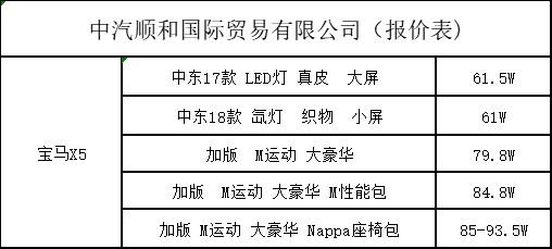 附赠近期平行进口宝马X5报价表以供参考。