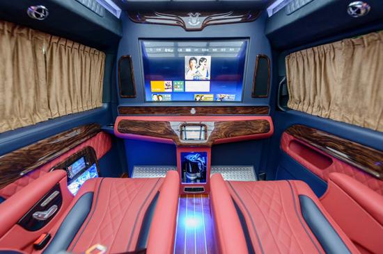 奔驰威霆七座改装商务车;贵宾区私密窗帘,豪华游艇地板,32寸高清液晶升降电视,吧台,热水壶,蓝光DVD,航空座椅 电动沙发床,车载冰箱,前后对讲电话,220V电源可拆卸便携式小桌板,BOSE5.1立体环绕音响。
