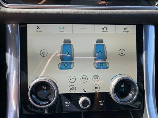 揽胜运动版中控区域采用了全新设计的触控液晶屏,并匹配Touch Pro Duo信息娱乐系统,功能十分强大,而倒车及车侧影响、自动泊车辅助等也都可以在上面进行操作。而空调区域的变化则最为明显,该区域将此前的按键及旋钮的操控改为全液晶屏触摸式操控,大大提升了内饰十足的科技感。路虎揽胜运动版还为后排提供了10英寸的显示屏,方便后排乘客也能享受车内的娱乐系统。