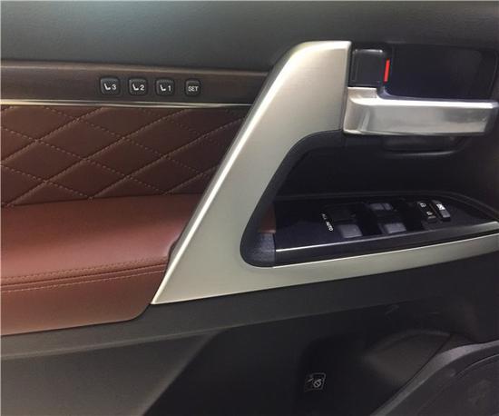 2018款中东版酷路泽5700顶配的外观与其他配置的5700大有不同,外观带有前后大包围,前脸镀铬条中镶嵌流水灯,20寸的抛光轮毂,尾翼高位刹车灯,全车镀铬装饰,而且外观的前车标是镜面的,这就是ACC雷达测距系统也叫自适应巡航系统,尾部是VXR标识,这是顶配的象征。酷路泽5700车内看着更明亮、同时也更显豪华,更符合中国消费者对“豪华”的定义。