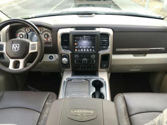 17款道奇公羊长角号5.7LV8中控台设计看上去比较死板,但丰富的配置会让你不由得为其称赞。中控台的设计简洁硬派,符合公羊的气质。后排座椅则有通风和加热设备,并且配备了一个小型存储工具箱,可见此款车的设置是十分人性化。