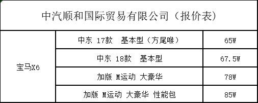 目前18款宝马X6在售的国家分版本分为,中东,墨版,欧版,加版四个地区版本,最具代表性的就是中东与加版,中东版本的宝马X6主要优势在于入手价格低,而加版的主要优势就是配置高帅到没朋友。