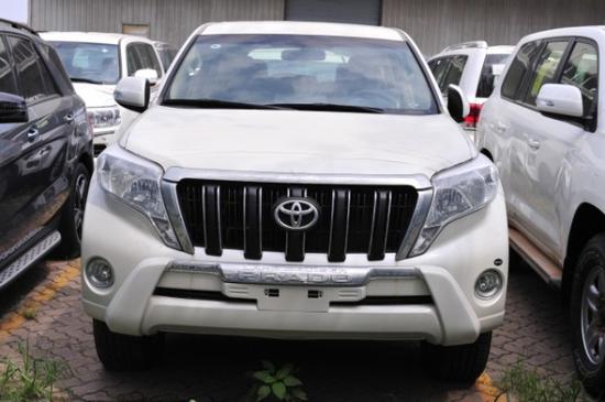 17款中东霸道3000 柴油 自动 配置:TXL 3.0T ,白/米,国5排放,后挂备胎高配,7座,18寸合金轮毂,智能卡,一键启动,巡航,多功能方向盘,冰箱,雾灯,三区空调第二排和第三排多出风口,全时四驱,脚踏板,手动丝绒座椅,无天窗,镀铬中网,车身同色门把手倒车镜,尾翼,电动折叠后视镜。