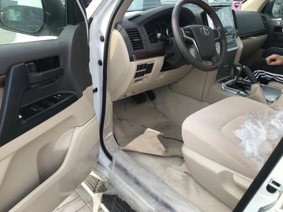 配置:18款酷路泽4500柴油天窗后娱高配 白/米 V8柴油4.5L双涡轮增压 天窗 18轮 LED氙气 冰箱 9寸大屏倒影 吸顶式DVD 智能卡一键启动 7座 6速 2气 镀铬前中网 黑色挡泥板 多功能方向盘 桃木方向盘及桃木内饰 前雾灯 前小杠 航踏 行李架 后尾翼 双区自动空调 后拖钩