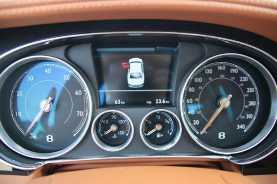 18款宾利飞驰V8S的中控台造型更偏复古,而用料则是这台车最大的亮点。中控台大面积的胡桃木饰板仿佛玉石一般润泽,让人非常舒心。三幅式方向盘由胡桃木与真皮组成,握感相当棒。仪表盘内使用了大量的镀铬边框,表盘设计较为复古。推拉式的空调出风口,开闭之间的阻尼适中,手感很棒,精致的镀铬工艺及造型更是让人欲罢不能。