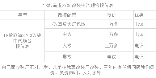 18款丰田普拉多改装版我们本次实拍的车型在素车基础上,进行了部分改装升级,全车改装了运动包围和航空脚踏,外观方面另外的两处变化是灯光和轮毂,灯光改装了氙灯和LED行车灯;轮毂从17英寸升级成18英寸钛合金轮毂,内饰改装后的豪华度和功能性还是值得肯定的,包括:多功能桃木方向盘、中控彩色屏幕、主/副电动加热座椅、桃木装饰等。咨询热线在文章下方。