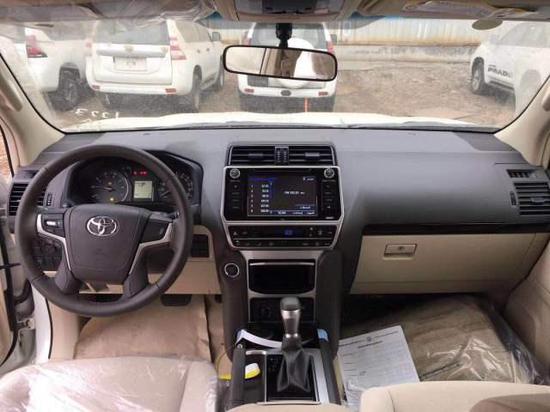 2019款丰田霸道4000TXL版,主要配置:4.0L V6发动机,6速手自一体变速器,全时四驱,9气囊,天窗,18寸轮毂,中央差速锁,行李架,前小杠,雾灯,卤素大灯,高位LED刹车灯,镀铬中网,同色门把手,车身防擦条,双区空调,多功能方向盘,智能卡,一键启动,冰箱,150L双油箱,后四电眼,黑踏,拖钩,丝绒座椅,半电动座椅,电动调节折叠后视镜带转向灯,胎压监测,定速巡航,发动机防盗,尾翼,外挂备胎。