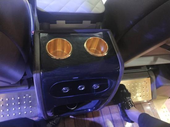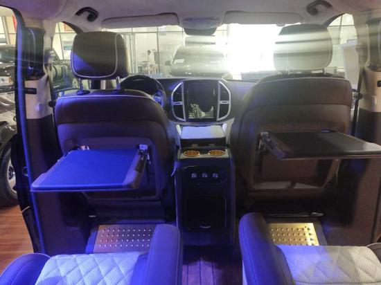 后加装:钻石顶彩虹色个性调节及鹿皮绒包覆,满天星星空车顶,JBL高保真音响贵宾区强化隔音隔热处理,触控屏调光控制系统,车顶行李架,中文导航,中央竖屏式大屏导航,环车影像,隐藏式行车记录仪,LED鹰眼氙气大灯,LED日间行车灯,前雾灯,流水型转向灯,高级打孔米色真皮座椅,前排中央扶手带冰箱,仪表台真皮包覆,内门板真皮包覆,真皮桃木方向盘,高级桃木内饰,主副驾驶电动座椅带加热,第二排通风、加热、按摩可360度旋转Maybach航空座椅带腿拖,第三排电动座椅180度放倒式沙发床,第三排杯架,第三排座椅后抽屉,豪华进口整车窗帘,后掀式电尾门,可拆卸式钢琴漆会议桌(桌腿高度可调节),迈巴赫高光大理石地板,第二排高清宽屏吸顶DVD,主副驾驶后背小桌板,Maybach不锈钢门槛,迎宾门槛灯,车内可调颜色氛围灯等。