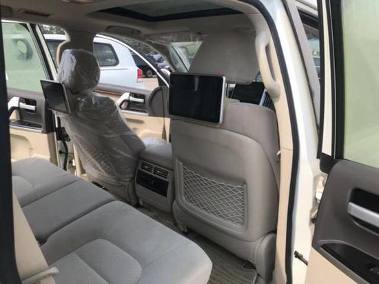 配置:19款酷路泽5700VXR后娱前后包围高配版 白/米 环保公开 配置:后娱(双头枕DVD)18轮,天窗。8速,遥启,四门智能卡,LED氙灯,流水转向灯,大屏倒影,主驾电动,七座丝绒座椅,彩色液晶仪表,8气囊,前后包围,航踏,冰箱,儒行模式,镀铬门把手,电动折叠后视镜,桃木多功能方向盘及桃木内饰,前二后四电眼,底挂备胎,多地形驾驶模式选择,低速巡航,弯道辅助,车身稳定系统,胎压监测,巡航定速,电子恒温空调,车门迎宾, 彩条,行李架,防擦条,雾灯,拖钩,尾翼。