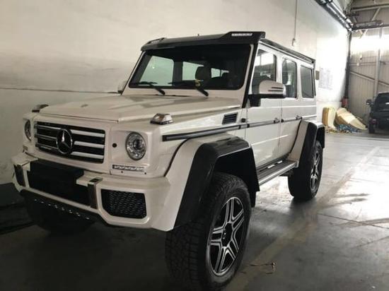 配置: 17款 奔驰 G500 4x42 4.0T (汽油)V8发动机,7速,门式车桥,AMG包围,加高加宽的车身,氙灯,日行灯,黑色翻毛皮内顶,碳纤维内饰,前排座椅加热带通风,翻毛皮和真皮双拼座椅和方向盘,换挡拨片,座椅记忆,碳纤维轮眉,车顶碳纤维扰流板带LED上雾灯,黑色车顶,,不锈钢双车底保护,可调悬挂,22轮,前中后三把差速锁,哈曼音响,红卡钳,打孔刹车盘,小天窗, 倒影,踏板