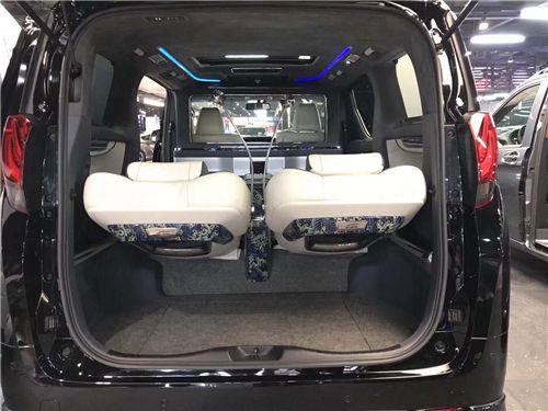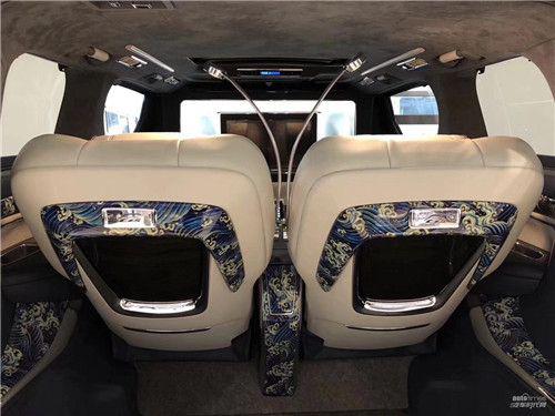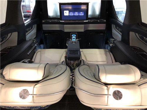 内饰商务配置:●电动吸合双侧滑门带防夹功能● 乘客舱电动雾化玻璃带手动遮阳帘● 电动一键式升降雾化隔断● 飞机头等舱首长座椅,180度展开带3级记忆功能(通风,加热,气动按摩)● 紫檀木功能小吧台● 伸缩航空铝制小桌板2级折叠●现代奢华感酒柜● 紫檀木+环保皮侧包围面板● 进口级游艇豪华电子钟表● 炫彩渐变氛围灯+多功能前后双天窗● 后舱三档亮度调节照明灯● 全车紫檀木铝制带激光雕刻花纹地板● 采用美国大能隔音底盘● 后舱座椅带触摸式蛇形360度旋转阅读灯● 超大储物后备箱● 多功能储物格● 后备箱多级挂物勾● 多工能折叠后视镜● 进口全车空气动力学套件