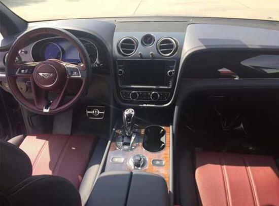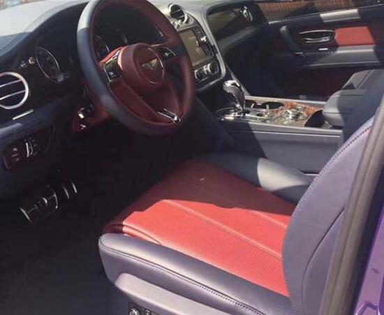 [车型]:19款宾利添越 汽油 4.0T V8 [颜色]:蔚蓝紫 [内饰]:板球红+帝王蓝 [价格]:325万 [状态]:现车 [选配]:付费外漆 同色车身 座椅刺绣宾利徽章 前座舒适座椅配置(5座配置)镀铬进气格栅及前防撞格栅 3辐式双色真皮镶边方向盘 内饰颜色配置 (22寸5幅定向铝合金喷漆轮毂)后备轮毂 [标配]:全景天窗 深提琴背桉木 可调前排座椅 后排长座椅(可折叠) 直沟纹座椅嵌件和车门嵌件 双面板系统 带有固式后面板 可倾斜和可滑动式前面板以及一个全长遮阳帘 经典“B”设计的脚踏板 大尺寸亮黑色矩阵格栅 带铬制环绕式和中央格栅条 黑色前部下保险杠格栅 采用 LED 技术和集成式大灯清洗器的四个浮动式大灯 以电动方式开启和关闭行李厢系统 60 GB 固态硬盘 六个不同的媒体源 导航系统—带有文本到语音转换 3D 建筑显示屏 4G LTE 电话模块 WiFi 热点 盲区检测 倒车摄像头