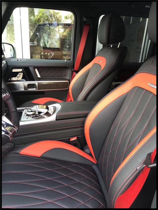 19款奔驰G63与前代车型相比,标配新式仪表盘和最先进的COMAND APS NTG 4.5驾驶室管理和数据系统。还配备了带彩色TFT显示屏的AMG表盘、AMG主菜单和单独的挡位显示器以及采用白色照明的AMG门槛。全新进口奔驰G63AMG采用了全黑的内饰配色,间中点缀的银色镀铬装饰显得相当精致。