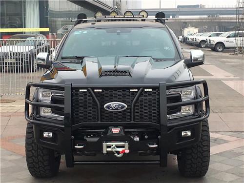 全新福特F50方方正正的前大灯与前保险杠造就了完美的车头造型与比例,进气格栅采用蜂窝状网格设计,并配以雕刻式的福特品牌标识。其前保险杠相当硬朗,且保险杠下方配备金属护板,以应对极端路况环境。整体的车架由高强度钢冲压而成,这样不但提高了车身的耐用性,更对乘客在安全方面有了进一步的保证。