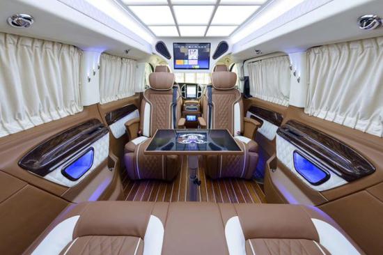 乘客舱前排首长级多功能按摩座椅带脚托,设计了滑轨,可自由电动移动和收缩,适应多种身高、体型的乘客,多种坐姿任君挑选,将舒适惬意延伸到车内每个角落。座椅旋转对坐,柚木地板上配置有可拆卸小方桌,时尚钢琴烤漆,高承重性,任意开启商务洽谈模式。本公司奔驰威霆商务现车销售,车型颜色多选,款型配置丰富,咨询可致电下方24小时贵宾热线。