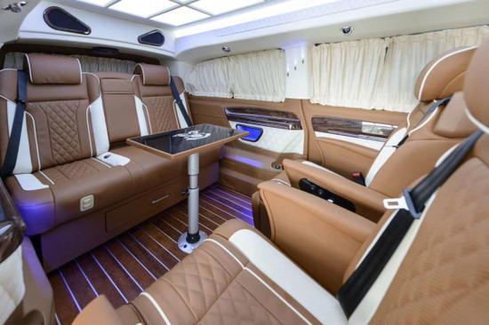 全新奔驰威霆车身尺寸为5370×1928×2050mm,轴距达到了3430mm,动力搭载M274系列也是奔驰最新一代的2.0T涡轮增压汽油发动机, 其最大输出功率为156kW,与之匹配的是7G-TRONIC PLUS七速手自一体变数系统,配合直接选档,让换挡灵敏顺畅,动力输出随心所欲,轻松应对各种路况。豪华改装MPV更是根据实际需求灵活改变,满足商务接待、洽谈、出游等各种类型的需求使用。内 饰改动也推陈出新,整体视觉感受及乘坐体验均有显著提升后排座椅放到成床,为您的旅途提供更多方便!