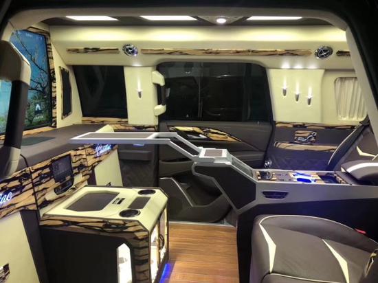 18款凯迪拉克总统一号内部布局精巧且豪华,科技感十足。得益于近6米的车身及逾越3米的轴距,4+2座布局的2018款凯迪拉克总统一号内部空间依然广阔。中心吧台设备有一部折叠升降桌板和酒杯架以及多媒体播放设备,路途上一边听着音乐一边小酌一杯也是非常惬意的。座椅全体上为4座,在吧台处设备了两个折叠躲藏座椅使得车内可以容纳下6个人。无论多久,坐在车舱里也不会觉得很压抑。