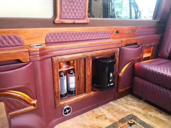 ■整车顶级红木雕刻装饰组件 顶级奢侈品材质包覆■超薄40寸高清液晶电视 及升降智能控制系统、手工雕刻花纹电视框■DYNAUDIO丹拿5.1立体环绕影音系统 ■经典迈巴赫九宫格顶灯■全电动沙发床(可全放平/带前后电动调节/电动靠背调节/电动腿托/电加热/)■VIP超宽豪华双层脚托欧式首长席,(带电动前后调节、电动上下调节、电动按摩、电加热 、通风、多功能拆叠脚托、座椅一键式记忆功能、三点式安全带、开关组件 )■隐藏式全电动车载12升压缩机强制冷冰箱■中式古典红木扶手箱,经典小抽屉■手工雕刻《凤戏牡丹》中国风韵 圆弧设计■加厚全遮光双层风琴百褶电动窗帘套装■精致酒柜(含法国进口CDA钻石水晶玻璃高脚杯一套)■豪华航空铝桌板■智能隐藏式红木《凤戏牡丹》旋转豪华车载咖啡机■迷你精致储物箱■反向车载电视■DVD主机控制系统,车载集成电源开关总成 220V 12V USB ■格式成张环保地板■玫瑰金奔驰踏板■阅读灯/氛围灯/顶棚灯/套件■人机交互触摸控制系统、全车智能声控系统■日本进口东丽奥斯维绒顶■经典镀铬水杯托■电动迎宾踏板套件