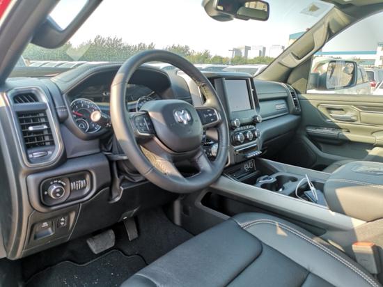 内饰方面:19款道奇公羊大角牛皮卡在内部设计上还是延续了美式那种比较粗犷的风格,规整的中控台设计看上去比较死板,但丰富的配置会让你不由得为其称赞。中控台的设计简洁硬派,符合公羊的气质。仪表盘底边有花纹,则更加凸显了这款车的文雅性。软性材质的仪表台设计,摸上去手感非常舒服,并无些许生硬之处。