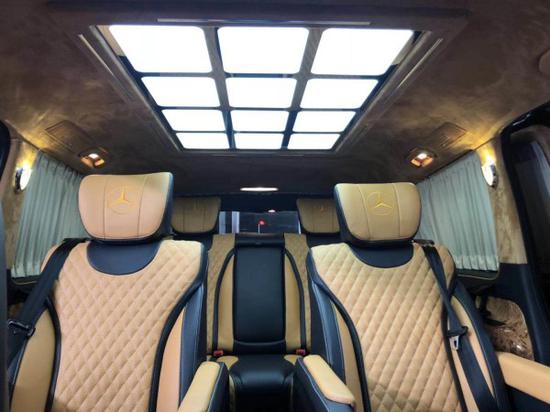 19款奔驰麦特斯豪华商务房车为您度身定制VIP专属步入感。乘客舱前排首长级多功能按摩座椅带脚托,设计了滑轨,可自由电动移动和收缩,适应多种身高、体型的乘客,多种坐姿任君挑选,将舒适惬意延伸到车内每个角落。娱乐影音配备齐全,吸顶高清液晶电视,需要时可以往下翻,按钮一按,最新热点、时尚资讯随时掌握。