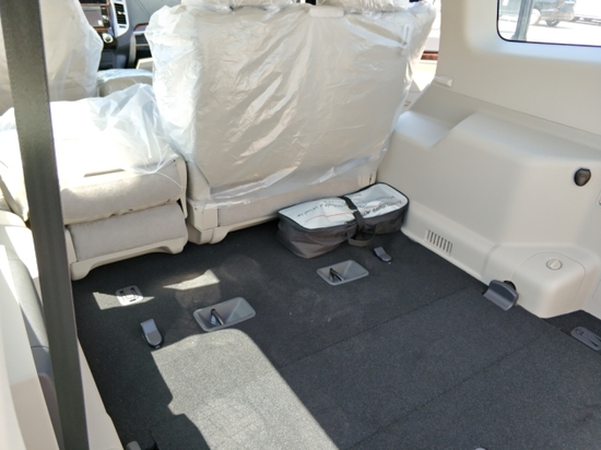 七座 真皮座椅 桃木内饰 桃木多功能方向盘(带电话连接按钮) 车载小屏(显示数字时钟、油耗、气温、气压、海拔、指南针等功能)12声道北美莱福音响影音系统 主副座椅电动调节 车载小冰箱 四方位倒车雷达 带引导线倒影系统 智能空调(后排调节按钮)折叠遥控钥匙 AUX功能预留,18款帕杰罗V97前排储物空间比较丰富,而最为实用的莫过于中央扶手箱了,它分为上下和冰箱,可以用来分类存放物品。但到了第二排,能称得上是储物空间的也就剩座椅中间扶手处的杯架了,能较好的固定水杯,实用性还不错。