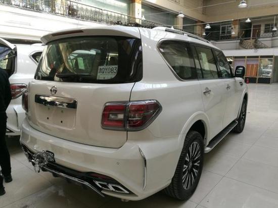 Nismo外观把白、黑和红搭配的非常精彩,22英寸的超大撞色轮毂把全尺寸的圆滚滚途乐SUV也装扮出了几分运动感。