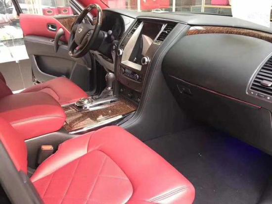 Nismo车型的内饰则使用仿大理石花纹的木饰板等材料,仪表、方向盘、启动按键到处是小块红色涂装挑逗着驾驶者的神经。但归根结底它还是一台日产的途乐Y62!