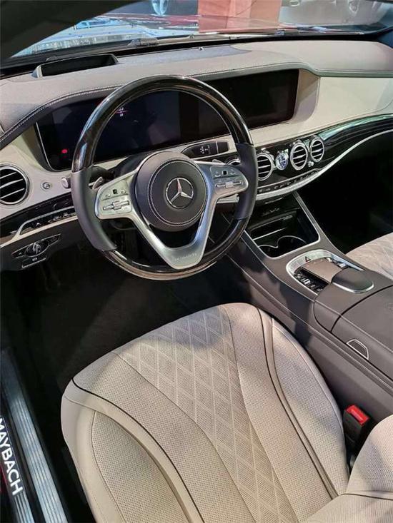 这内饰第一眼给人的感觉比较简约,但大家要知道奔驰豪车都是在内饰上下功夫的。首先,这车的方向盘加入了桃木材质,复古而奢华,开车体验会非常不错;其次中控几乎一体式的显示屏让人感觉科技感十足,估计娱乐系统会非常多,不然也对不起这个大屏呀!;最后就是座椅了,用料以及做工都比较精致,对得起豪车的身份。