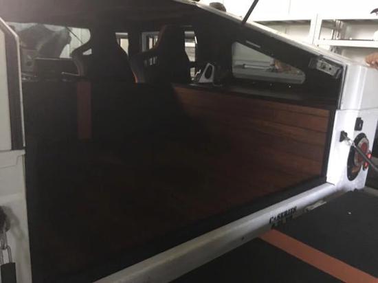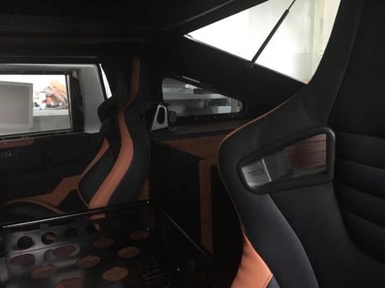 Humvee C的钢板用了800多颗铆钉铆接在一起,结实程度简直堪比装甲车,车内的整体结构还是军车的样子,不过在材质和细节方面做出了一些改动,Humvee C更换了订制的赛车座椅,舒适性和包裹性都不错,原先给机枪手站立的位置,如今被改成了储物架,不过这个储物架貌似有点太大了。