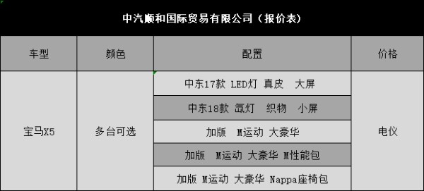 目前平行进口市场上主流的宝马X5主要有欧版,墨版,加版,中东版等各个版本,其中又以中东版销量最大。丰富的国家版本选择,都足以满足不同车主在个性与品味上的追求。(了解更多资讯请拨打文章底部24小时服务热线)