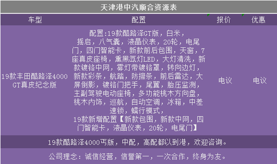 19款丰田酷路泽4000港口预售中,GT版顶配最新售价,陆巡V6全新评测优势PK同级,整车亮点解说中,高性能越野神车备受追捧。2019款酷路泽车系开启了丰田越野车王者的时代,六十多年的经验让丰田把酷路泽4000带给世界,它几乎就是这个世界最全能的越野车,不管是空间、通过性、还是可靠性都是无懈可击的。出游好时节,如果想选购一台SUV,这款车的性价比,会让您满意的。