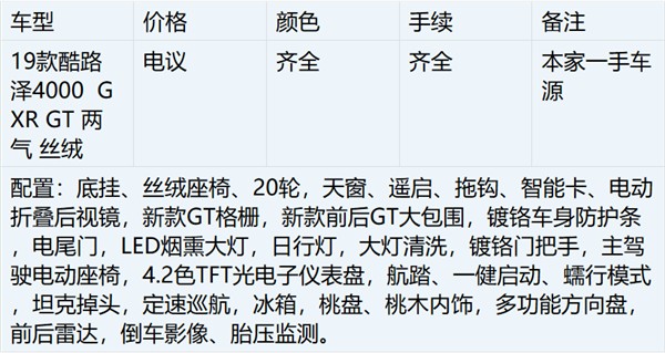 19款酷路泽4000第二排座椅可以向前折叠放倒,这样可以使兰德酷路泽除了驾驶第一排之外,后面的容积为最大的,用来搬家都不是问题。花不同的用车成本享受不同的用车体验。还是物有所值的。19款丰田酷路泽4000射着浑厚的军人气质,兼顾了不同路况的驾驶舒适性。兰德酷路泽才是真正的越野天才,在强劲不间断的动力中,为我们带来更为平顺流畅的驾驶感受。兰德酷路泽4000是一款备受越野族青睐的大型SUV,健壮的车身,粗犷的线条,宽敞的 空间,强劲的动力,无一不彰显丰田家族SUV的魄