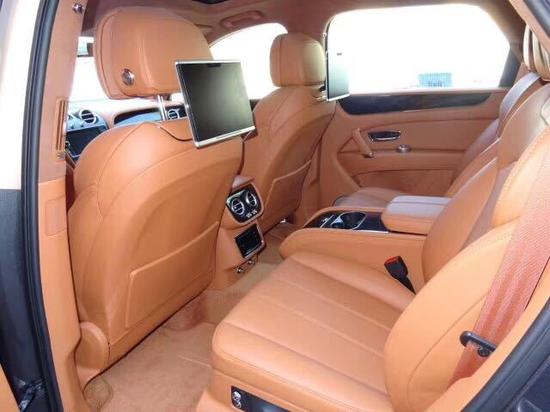 配置:宾利添越V8汽油 玫瑰金顶磁铁银 双色外观,牛马特黄褐色内饰,四座加舒适包通风按摩,后娱带地图,颜色包,外观前外观镀铬格栅设计,内饰中控平面台木饰条扩展,脚感电尾门,宾利刺绣标,21寸五式条闪耀车轮!