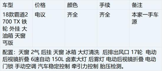 18款进口霸道采用2.7升的配置,中东版2700搭载的是发动机型号为2TR-FE的2.7升直列4缸顶置双凸轮轴16气门(VVT-i)发动 机,最大功率120千瓦,最大扭距246牛米,车身长×宽×高分别为4990*1885*1845毫米,轴距为2790毫米,150升油箱。