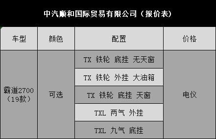 18款中东版霸道2700售价从四十二万至五十万不等,可选配置也相当之多,其中包括:底挂(外挂)备胎,天窗,九气囊(两气囊),多功能方向盘,电动座椅,前后雷达,大灯清洗等。