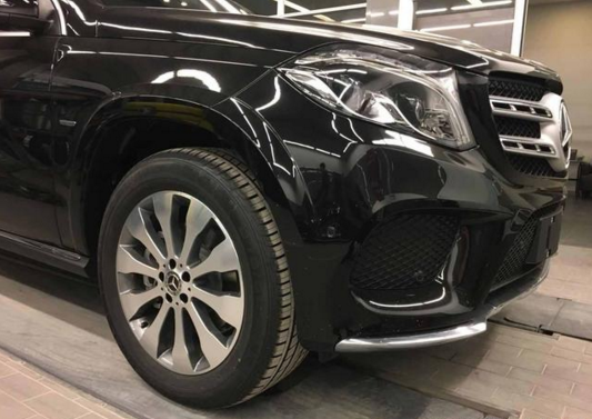 奔驰GLS450对下进气格栅进行了更加运动化的调整,前保险杠两侧开口更大,同时下唇采用银色镀铬进行装饰