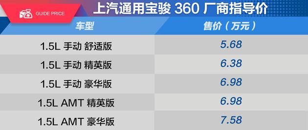 易车-新车型录手册 5月10日,宝骏360正式上市,新车定位为MPV车型,价格区间为5.68-7.58万元,新车外观采用了宝骏最新的家族式设计,车头精致时尚,定位略低于宝骏730,新车采用了1.5L+6MT和1.5L+AMT的动力总成。