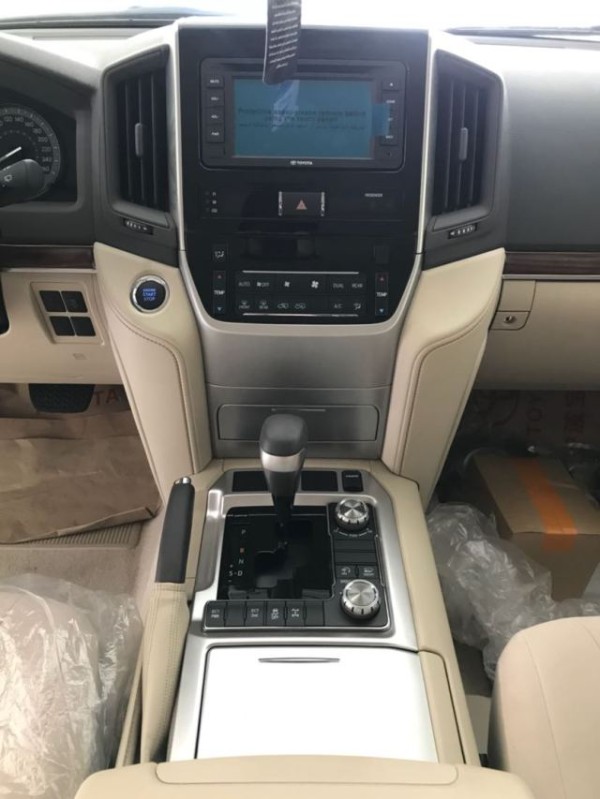 18款中东版丰田陆地巡洋舰4500柴油版 4.5TT双涡轮增压 32阀 V8引擎,带序列模式的8速手自一体变速箱,带分动箱(高速/低速)的全时四驱系统,️原厂日本17轮毂,️中控CD机 雾灯️智能电动后视镜️雷达 7人座位,LED氙气大灯,日间行车灯,镀铬前中网,后拖钩,智能卡,一键启动功能,多功能方向盘(电话/多媒体),桃木方向盘,桃木内饰,广播(AM /FM),MP3,DVD播放器,USB,IPOD,MICRO SD读卡器,AUX,HDMI,蓝牙,6扬声器,前雾灯,前排双区空调,后排手动空调,织物座椅,副驾驶座中控锁控制,胎压监测系统 (TPMS),220V电源输出,冰箱,驾驶座位及副驾驶座位气囊,防盗系统+发动机防盗功能,车身动态稳定控制系统(VSC)+牵引力控制系统(A- TRC),刹车防抱死系统(ABS),刹车辅助系统(BA),电子制动分配(E)