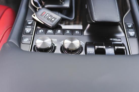 18款雷克萨斯LX570变速箱区域集成了车辆越野控制按钮、电源及USB插口,以及水杯架,后面的扶手箱很庞大,有制冷功能,长途旅游很是方便。全景影像系统的配备,也进一步增强了这款全尺寸SUV的易驾程度。此外,新款雷克萨斯LX570装配了Remote Touch控制机构、智能安全系统LSS+(包含自适应巡航、预碰撞安全、车道偏离预警等)、后排双液晶显示屏、后排多媒体控制、车内氛围灯、多种驾驶模式选择、HUD平视显示系统等。18款雷克萨斯LX570作为一款越野能力强悍的豪华suv,电子配置可真是不少,新车采用了前独立双叉式悬架+横向稳定杆、后四连杆机构式悬架的悬架形式,各种路面冲击通通由悬挂系统来消化。在这些越野利器以及中央差速锁的帮助下,身形庞大的LX570在面对一些烂路时也显得非常从容。