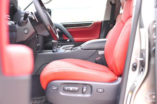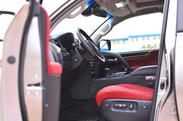 18款雷克萨斯LX570的内饰同样得到了全新的设计,风格上与雷克萨斯家族式风格保持一致,整体设计上以突出豪华感为主,中控台中央横向贯穿的实木饰板显得很有质感。新车的中控台非常宽大,中控台上方的液晶显示屏更是达到了12.3英寸,并集成了Remote Touch车载多媒体系统,该系统的控制按钮和触摸板和按键位于排挡杆右侧。中控台及仪表台上方的材质为软性真皮包裹,材质优越,按键及按钮手感好。车载蓝牙电话与移动电话连接之后,便可通过内置的麦克风和对讲机进行免提通话。仪表盘和音响系统控制面板遵循LEXUS雷克萨斯未来设计风格,呈现简洁与易操作的特点。