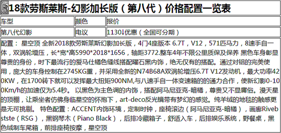 18款劳斯莱斯幻影缓慢的生产周期,让它像濒临灭绝的保护动物一样珍贵。励志打造全世界最安静,最舒适的汽车,因此倾尽全力为车身及内饰全手工打造,其中隔音方面包括6毫米双涂层隔音材料、使用有史以来最大的铸铝部件确保隔音效果及使用高效吸音材料。光用在隔音泡沫和高科技隔音材料上面,都有1超过30千克。甚至连轮胎的内部边缘也有隔音的泡沫。