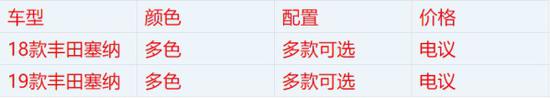 近日,从天津运泽汽车贸易有限公司了解到丰田塞纳大量进口新车到港,18、19款丰田塞纳LE,XLE,SE,LTD等。丰田塞纳全系现车手续齐全。本公司车辆全国可以正常落户上牌,全国可办理分期购车业务,北京、天津等地区可提供上牌指标服务。感兴趣的朋友不妨进一步关注: