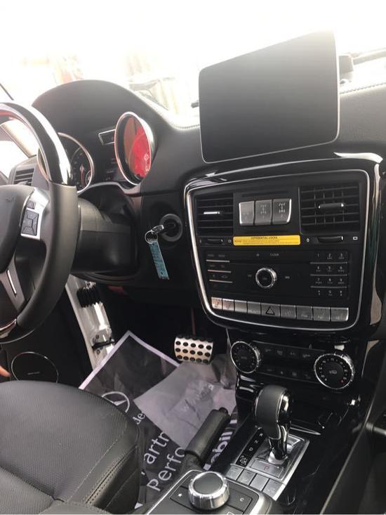 全新奔驰G550 AMG虽给人硬板板的感觉,但中控全部采用的真皮包裹,与视觉效果形成反差,符合他的身价,四幅多功能方向盘手感无可挑剔,操控方便,在越野界立命的三把差速锁,使用要按1-2-3的顺序启动,不可乱来。前、后轴和中间差速器锁,撤除那些走火入魔的改装车,其它越野车有其中间差速器锁就挺自得,再加个后轴差速器锁那就算到头了,而g级车在前轴也装上差速器锁。当三把锁都锁上后,动力均匀分至四个车轮,谁想打滑偷赖都不可以,理论上只要有一个车轮另有附出力,就能够逃出逆境。油箱容积96L,百公里油耗市区约14.5L,高速约11L。强劲的楔形特征以及醒目的奔驰车标使其在静止不动的时候都能让人感受到他的奔放气息。不过这些并不意味着奔驰G550的公路性能的丧失,推动近三吨重车身的时候,依然有0-100km/h加速10.2秒的好成绩。