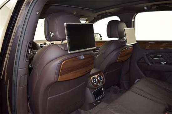 宾利风格,配备了全新样式的三辐式多功能方向盘,整体质感良好,中控台中央悬浮式液晶屏设计,上方圆形出风口是宾利独有的“牛眼式”出风口设计。2016款宾利添越还采用了四座设计,后备厢内配备了非常独特的“活动座椅”,用户可灵活的调节后备厢内的一些细小设计,方便至极。