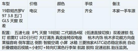 19款进口三菱帕杰罗V97中控部分的设计,比上代车型年轻了许多,给人不失厚重略带前卫的感觉。大面积的黑色和谐的搭配少许银色饰条,看起来也比较舒服。拥有38CM外直径实测数据的多功能真皮方向盘,手感属于中等水准,上面的按键排列整齐,左边可控制娱乐系统,右边是定速巡航功能键。三菱帕杰罗V97宽大的内饰空间,舒适的真皮座椅,13072066353让三菱帕杰罗V97的内饰尤为的内敛、大气。即使在驾驶过程中,也会让您恍若置身于远离喧嚣的世界。