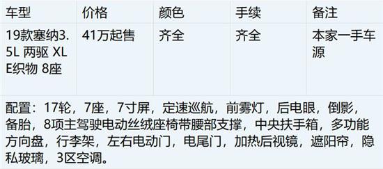 2019款丰田塞纳3.5L,多了几个不错的配置,比2018款将全系多了标配“Safety Sense”主动安全系统,包括自适应巡航、车道偏离预警、自动远光、防碰撞预警以及行人监测等多项安全配置。 多媒体系统也升级到最新EntunE3.0版本,全系标配移动地图导航。从次低配LE型起,标配车载Wi-Fi热点,并支持5台手机同时连接4G网络。 而包含JBL音响的EntunE3.0高级版(SE和XLE选配,Limited标配)增加了动态导航、目的地辅助及10.1吋的低音*,并配备9扬声器。 其他技术升级包括: 1、全系标配5个USB接口; 2、全系标配4.2吋行车电脑屏(老款SE以下为3.5吋); 3、后升级支持Android设备的流媒体功能; 4、终于有Bird View全景影像,不过仅供顶配Limited选装。19款塞纳3.5起步价42万起售。