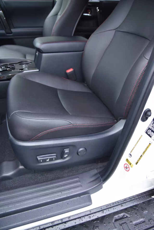 18款丰田超霸TRD Pro版 配置:4.0发动机,87L油箱,电动转向,多功能方向盘,蓝牙,空调,6.1英寸显示屏,USB,蓝牙,8扬声器,导航,前排加热座椅,8向调节电动驾驶座,4向调节电动前排乘客座,电动车窗,私密玻璃,电动门锁,倒车影像,ECO驾驶监控,自动防炫目后视镜,化妆镜带照明,真皮包裹方向盘,行李舱盖,脚垫,巡航定速,前后杯托,前排气囊,前排侧气囊,前排膝盖气囊,卷帘气囊,胎压警报,SST,VSC,ABS,TRAC,EBD,BA.HAC,DAC, P265/70R17,17英寸轮毂,轮毂锁,电动天窗,脚踏板,拖钩,尾翼,电动加热后视镜,后窗雨刮,雾灯,5速自动挡,全地形ABS,后差速锁,四驱选择,全地形选择,4轮低速巡航,引擎盖散热口,黑色座椅红色缝线,头枕TRD标,5座, 独有传统丰田标前栅,TRD底盘保护板,黑色进气口,前后TRD标志,TRD标志交单,TRD比尔施泰因减震,TRD前弹簧,全地形轮胎,TRD PRO排挡头,17英寸黑色铝合金TRD
